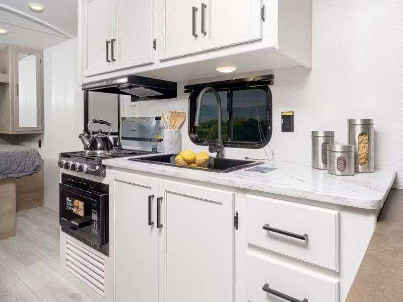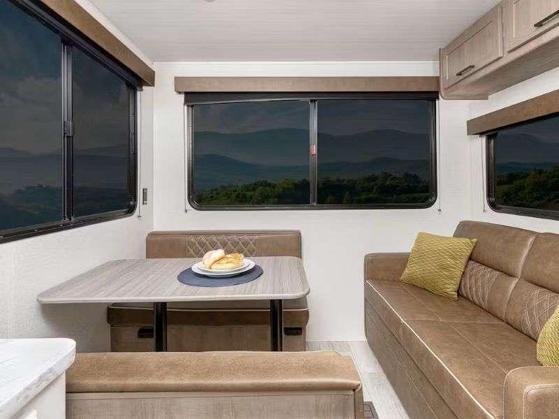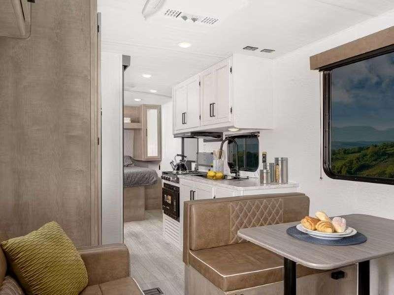 You are sure to love the spacious interior, the efficient 15.5k BTU A/C, and the tankless water heater for added comfort. Each model also includes blackout night shades, convenient underbed storage, in-floor heating ducts, and LED lighting to name a few amenities.